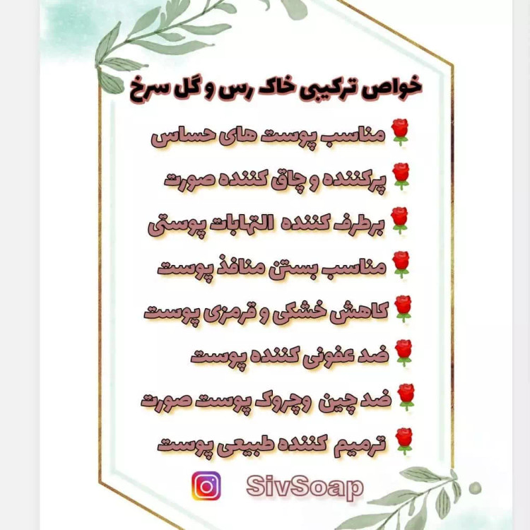 🌺صابون دستساز گیاهی گل سرخ و خاک رس🌹 🌹مناسب پوست های حساس 🌹پرکننده و چاق کننده صورت 🌹برطرف کننده التهابات پوستی 🌹مناسب بستن منافذ پوست 🌹کاهش خشکی و قرمزی پوست 🌹ضد عفونی کننده پوست 🌹ضد چین وچروک پوست صورت 🌹 ترمیم کننده طبیعی پوست 📎 این صابون از روغن های گیاهی #گلسرخ،#روغن_نارگیل،#روغن_زیتون،#روغن_کرچک و همچنین از #خاک_رس_بهداشتی و... 📎 این صابون مناسب #پوست_چرب و هم چنین پوستهای دارای #منافذ_باز یا پوستهایی که بخاطر #آکنه گود شدند می باشد. 📎یکی از مهمترین خواص این صابون اینه که چربی پوست شمارو کنترل میکنه و باعث کاهش جوش های زیر پوستی شما میشه. این صابون به عنوان یک #پرکننده_صورت بخاطر وجود خاک رس می باشد و همچنین #التهاب و #قرمزی_پوست را کاهش میدهد. ❌طریقه مصرفروش استفاده به این صورته که هفته ای دوبار از این صابون استفاده کنند صابون را به مدت 20 ثانیه روی پوست ماساژ دهید سپس با اب ولرم بشورید برای تاثیر بیشتر تا یک ساعت پس از استفاده از هیچ #کرم یا #لوازم_آرایشی استفاده نکنید.