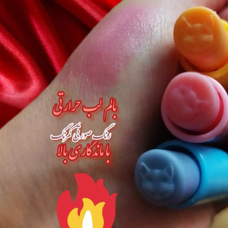 بالم لب حرارتی فانتزی عروسکی دخترانه طرح گربه با رنگ دهی ماندگار صورتی ملایم