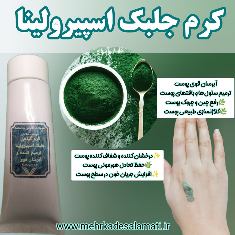 کرم جلبک اسپیرولینا دستساز و گیاهی (ترمیم کننده و آبرسان پوست)