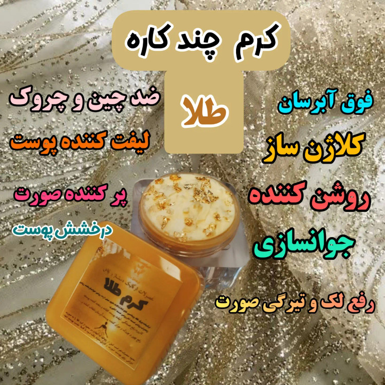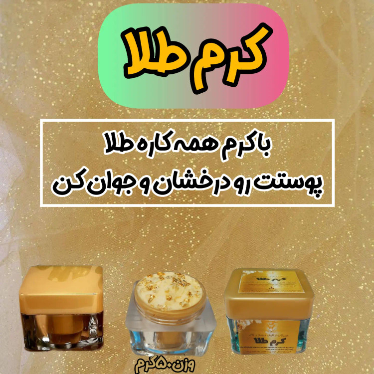 👌کرم طلا از ورقه های طلا ،کلاژن و آلاستین،پودر مروارید و پودر ها و عصاره ها و روغن های گیاهی و طبیعی ساخته شده است که خاصیت کشسانی پوست و ضد چروک رو داره حاوی مواد طبیعی است که در سفت شدن پوست موثر هستند.