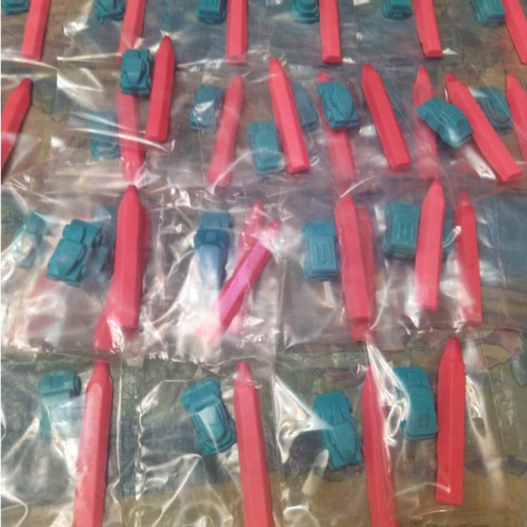 یک عدد صابون مداد صورتی هفت سانتی و ماشین آبی دو و نیم سانتی