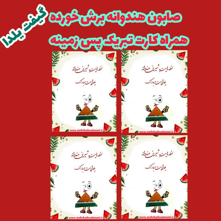 متاسفانه این کالا در حال حاضر موجود نیست. میتوانید از طریق لیست بالای صفحه، از محصولات مشابه این کالا دیدن نمایید.کارت تبریک یلدا همراه با صابون برش خورده طرح هندوانه