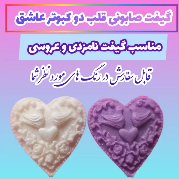 صابون طرح قلب و دو کبوتر(ارتفاع 5سانت وزن 7 گرم،صابون تزیینی هر عدد در سلفون روبان دار)