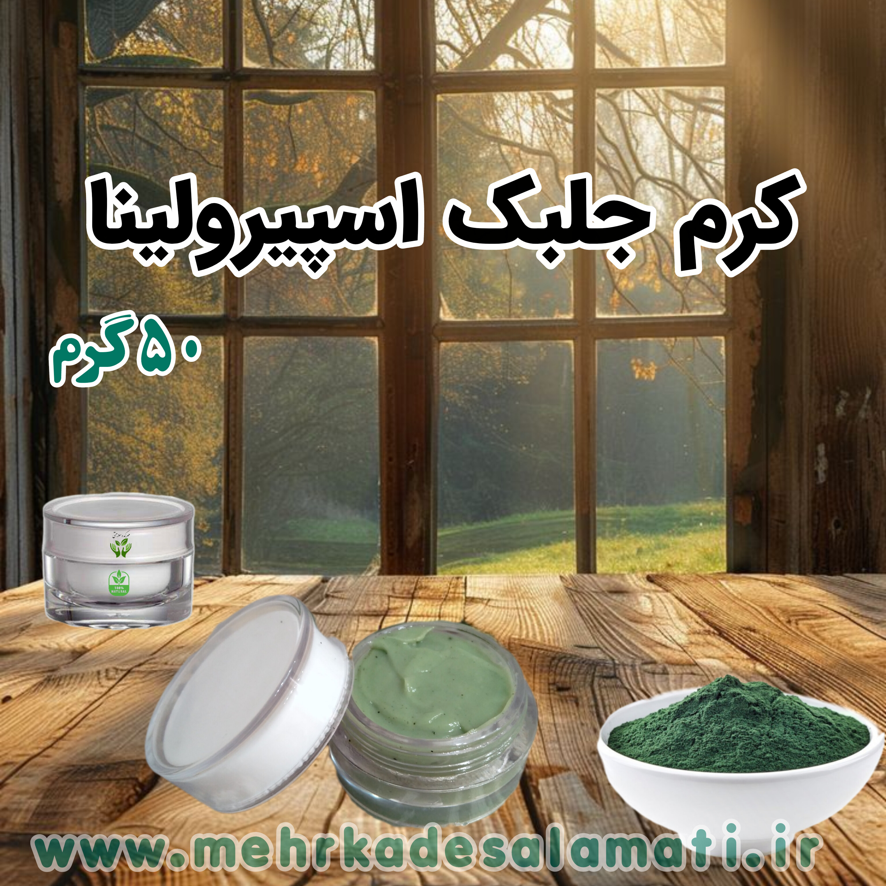 کرم جلبک اسپیرولینا دستساز و گیاهی (ترمیم کننده و آبرسان پوست)